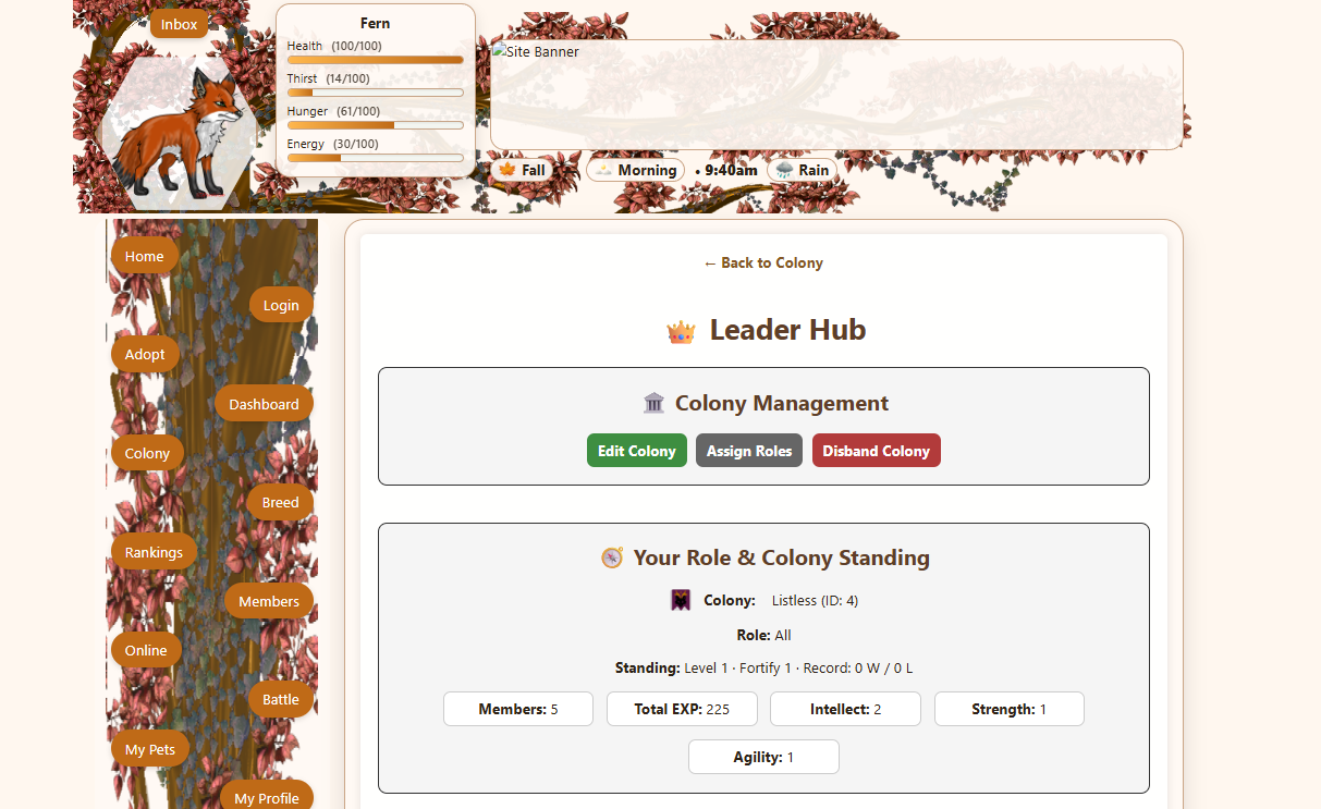 --added the kick members area to the leader hub- you can now kick out troublesome members and if you want to teach them a lesson, by killing off the pets they earned in your colony or simply shipping them ...