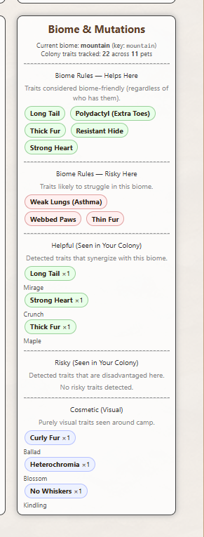 -Updated the leader hub to show active pets/player controlled pets and suggest roles based on a pets stats) I noticed it was hard to tell once you had more than your own in a colony!