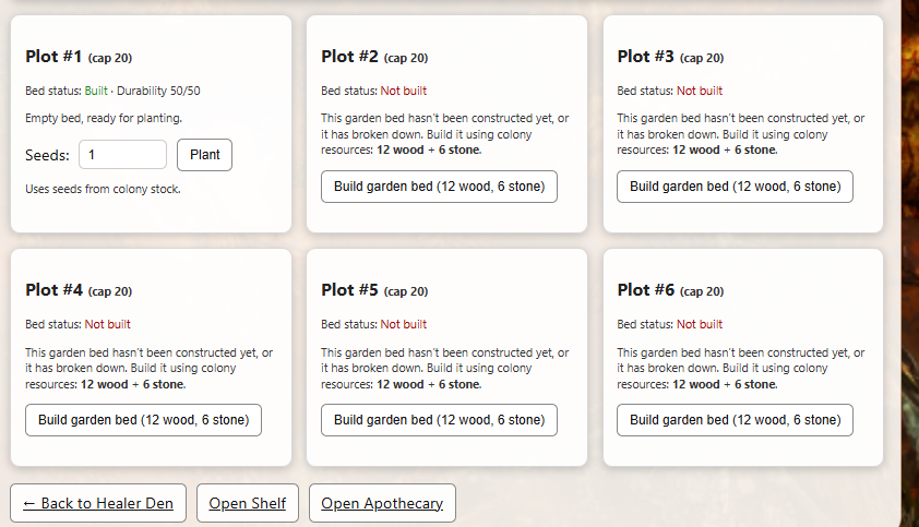 --Garden plots now have a 10 use life before needing to be built again