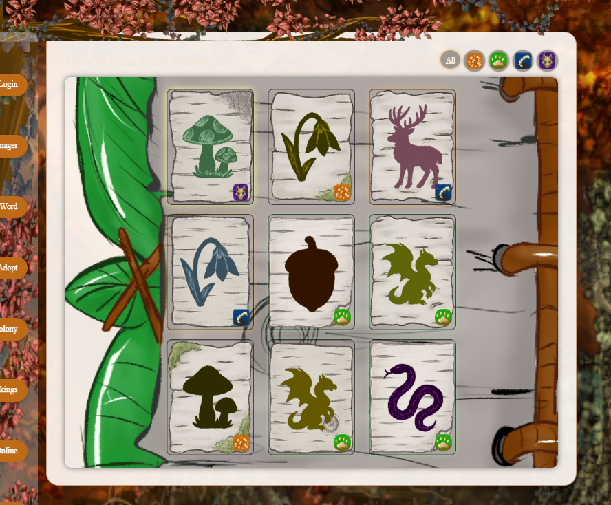 There are new menu areas you can find that lead you to both your binder and the card shop - I hope to allow you to trade cards later but for now I hope you enjoy collecting!