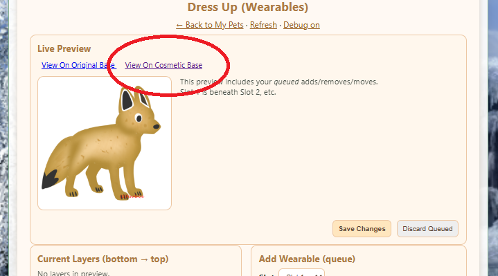 --You can now toggle to see the cosmetic base when dressing up a pet