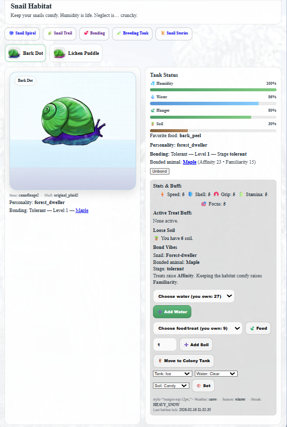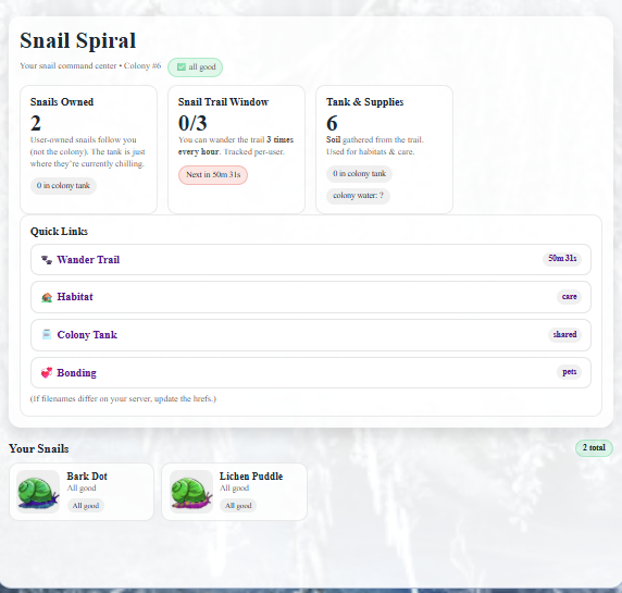 Snail sneak peeks? Sure why not heres some of what im working on right now thats causing me all kinds of trouble! The snails are generated and colored by code so each one is different.. and they can be bred too..